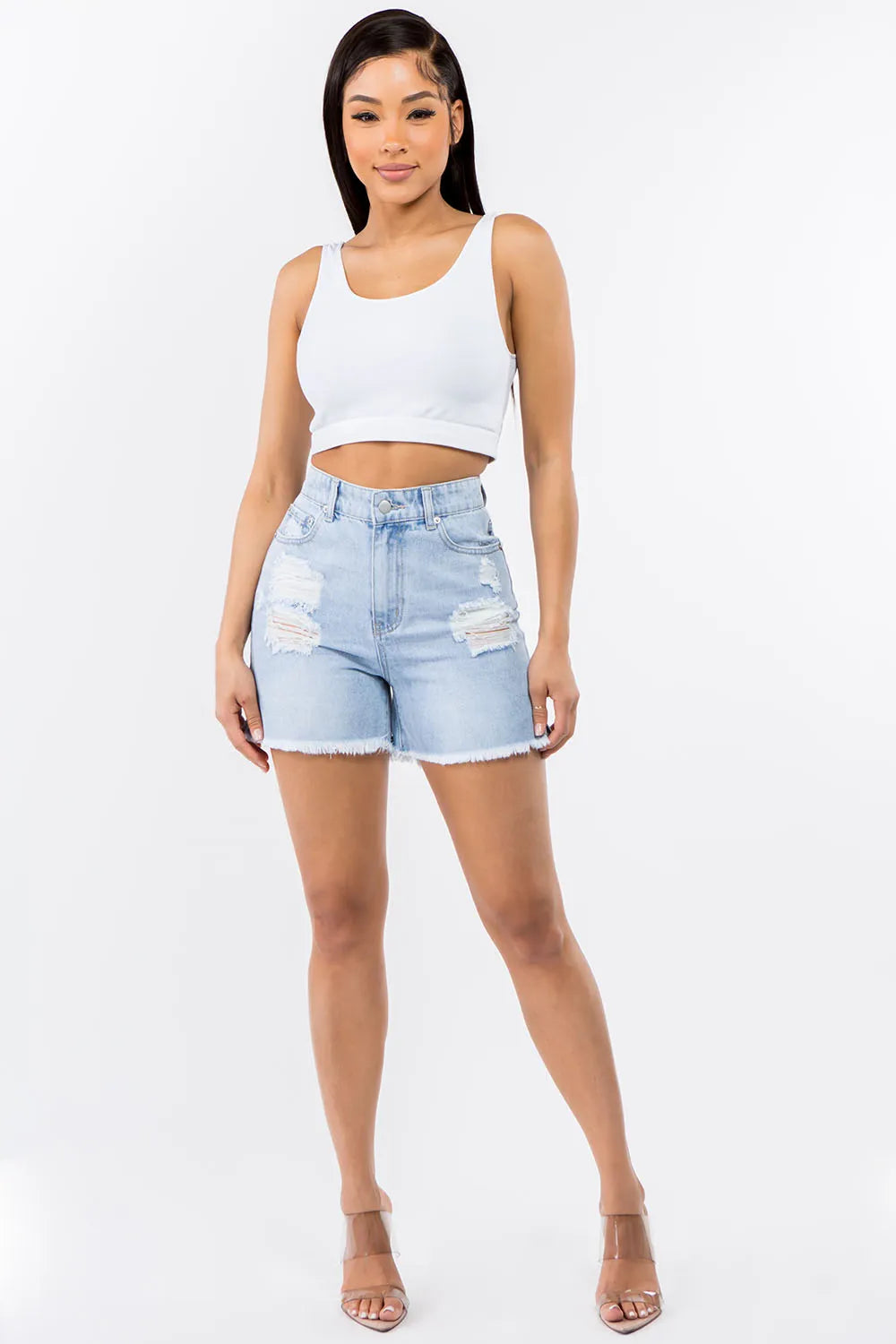 American Bazi High Waist Distressed Raw Hem Denim Shorts