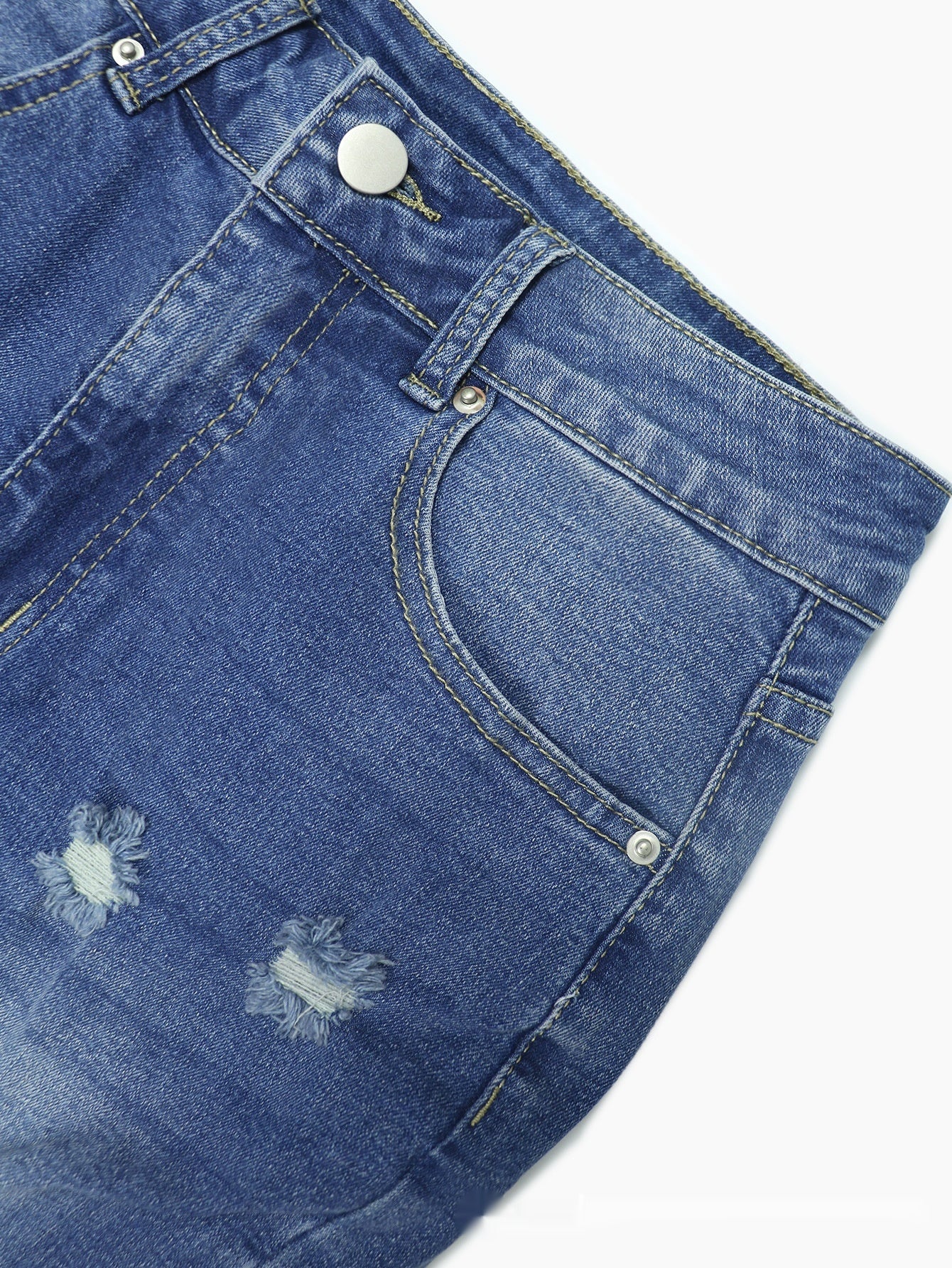 Dark Blue Tight High Waist Ripped Jeans Women's Tight