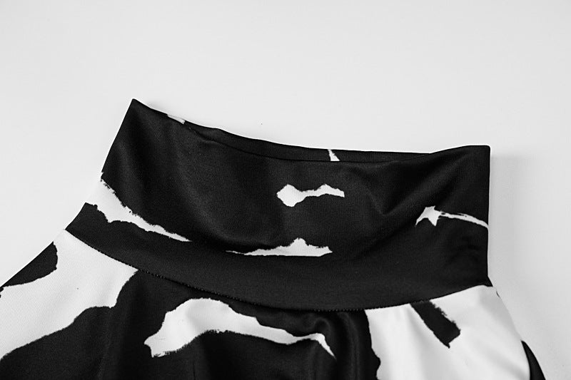 Floral Print Turtleneck Long Sleeve Slim Fit Slimming Dress