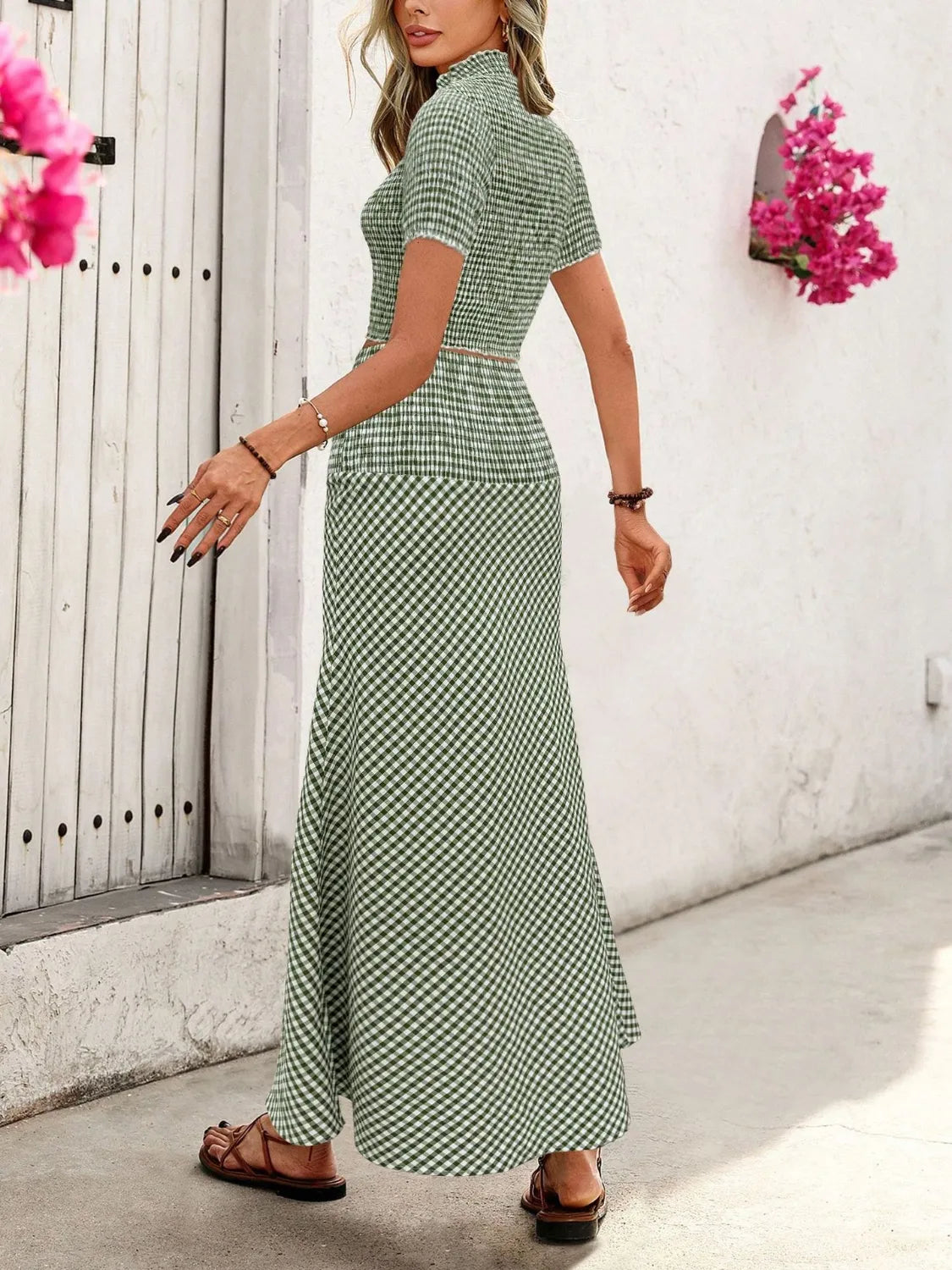 Gingham Smocked Top and Skirt Set