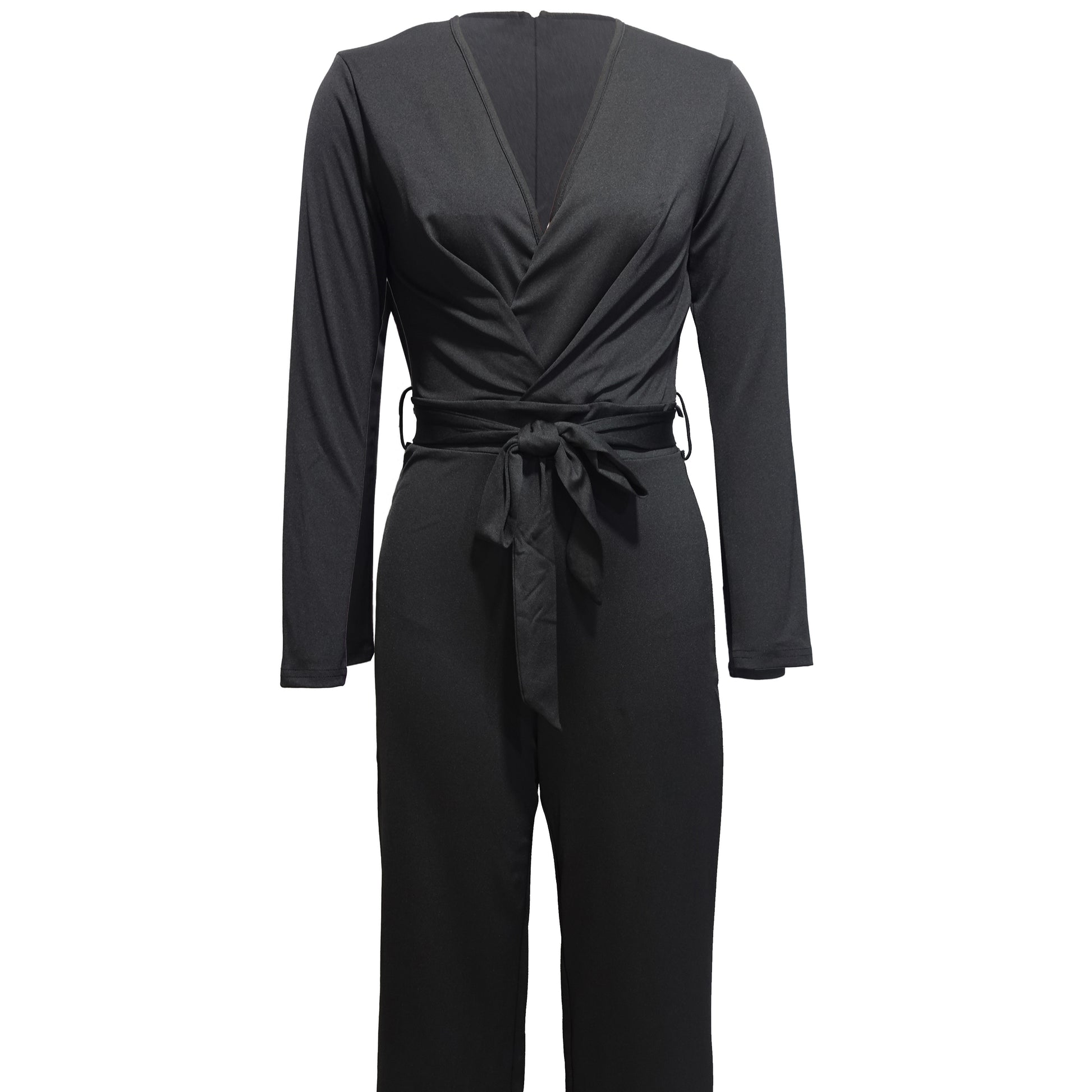 Ladies' Fashionable Slim Fit Sexy V-neck Long Sleeved Slimming Jumpsuit Plus Size