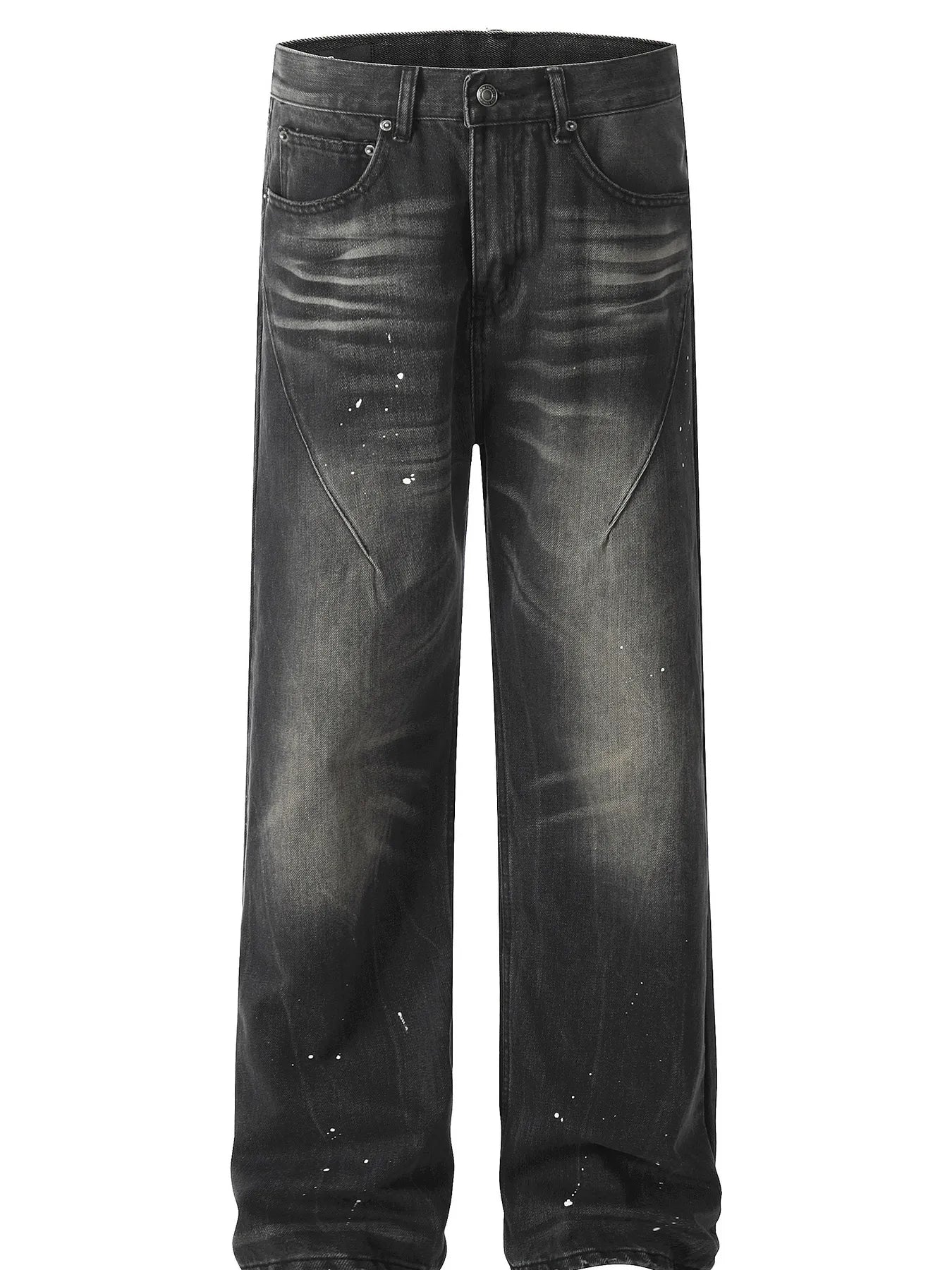 Men's Baggy Straight Leg Jeans with Paint Splatter Details