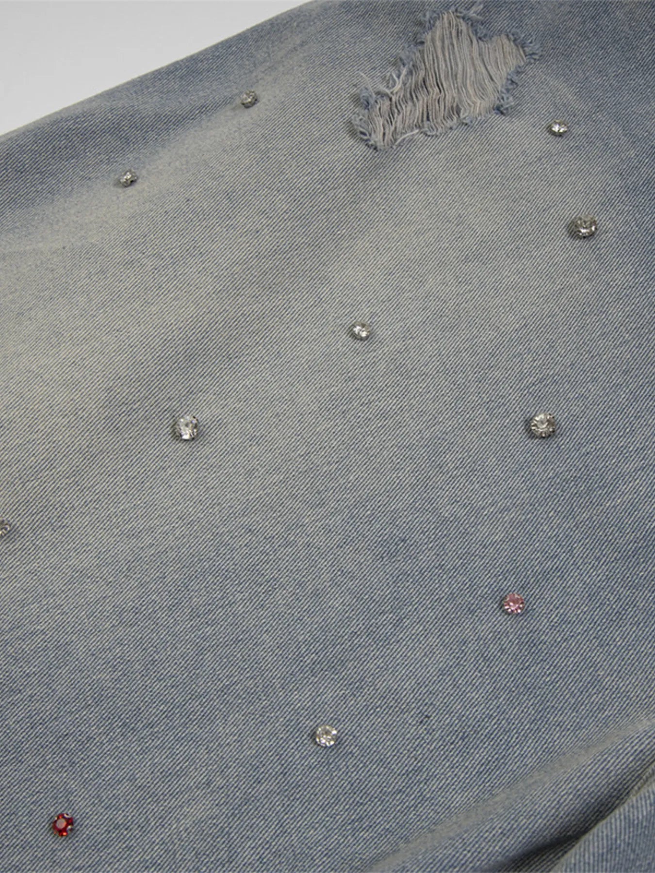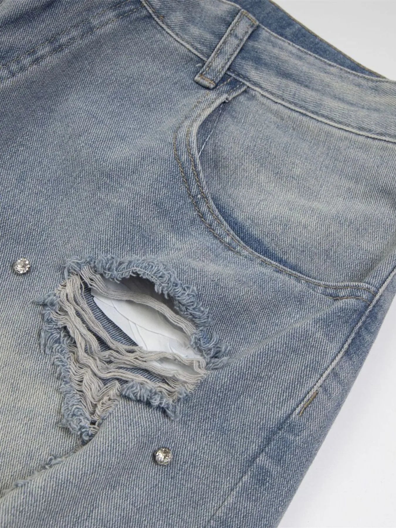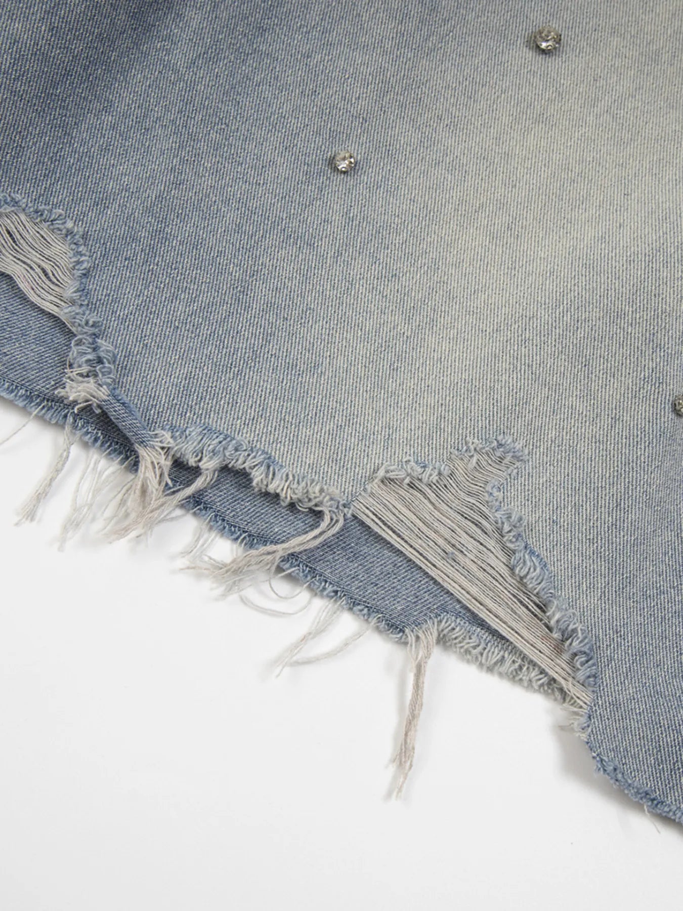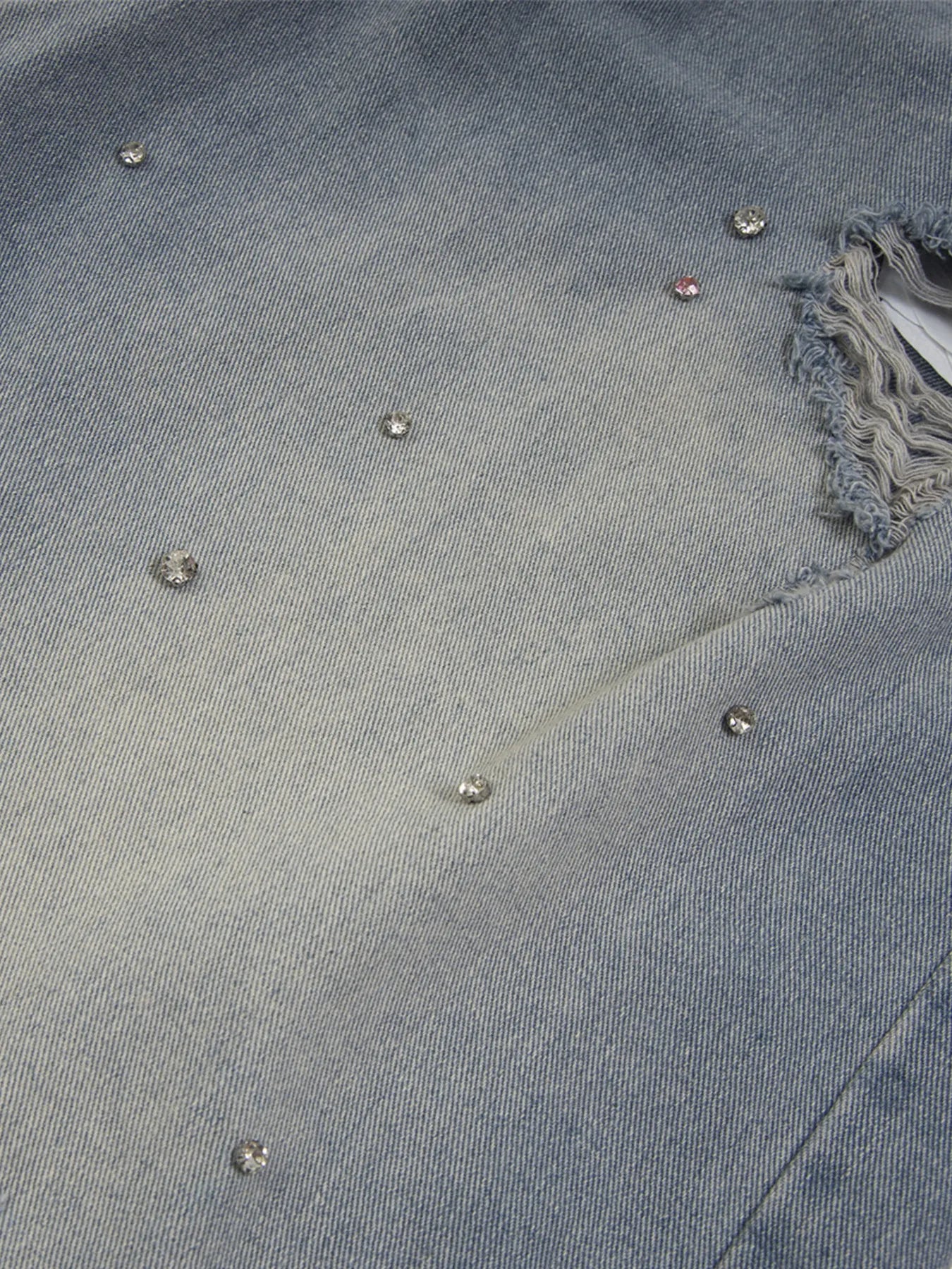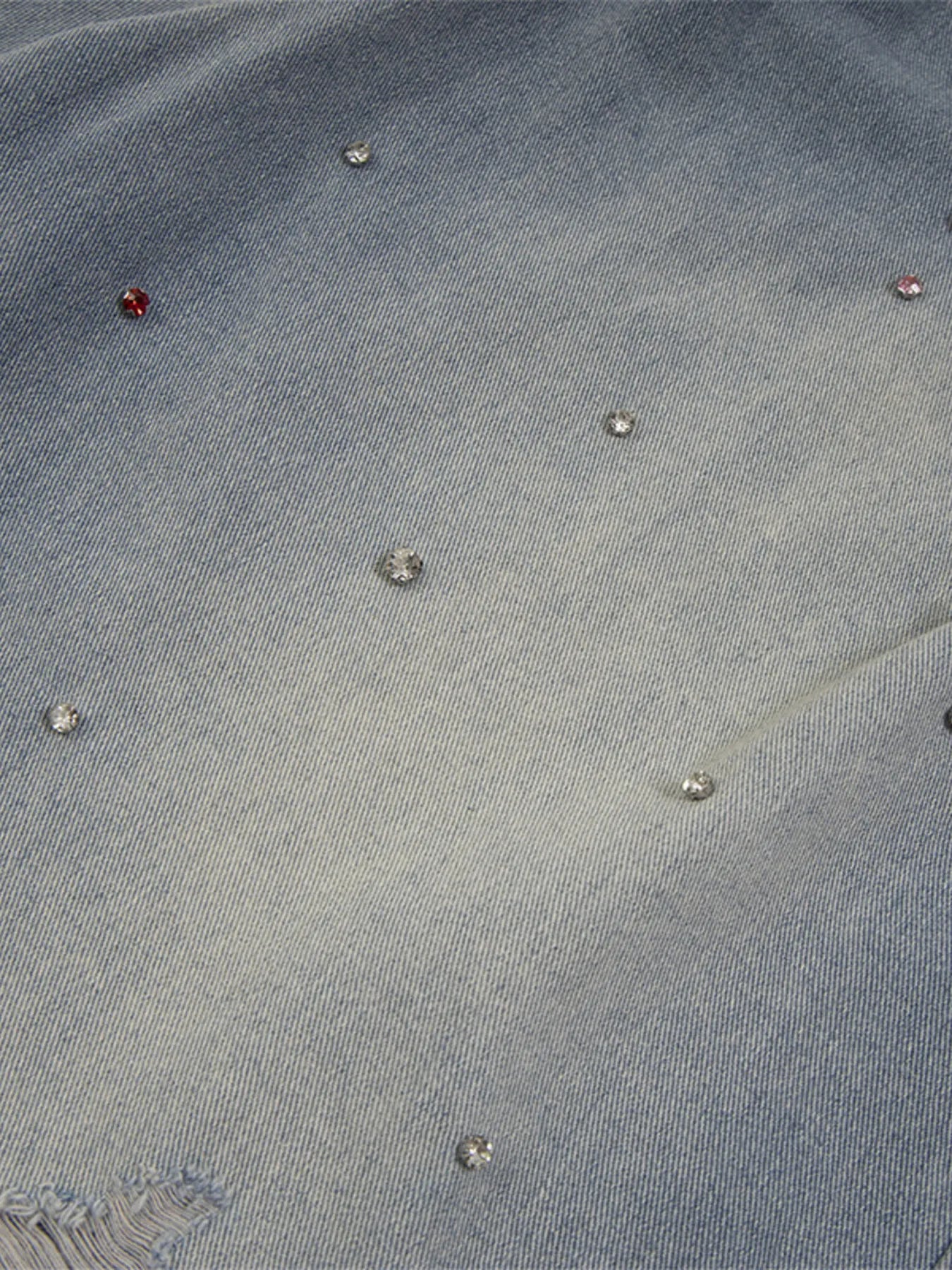 Men's Distressed Rhinestone Frayed Hem Denim Shorts
