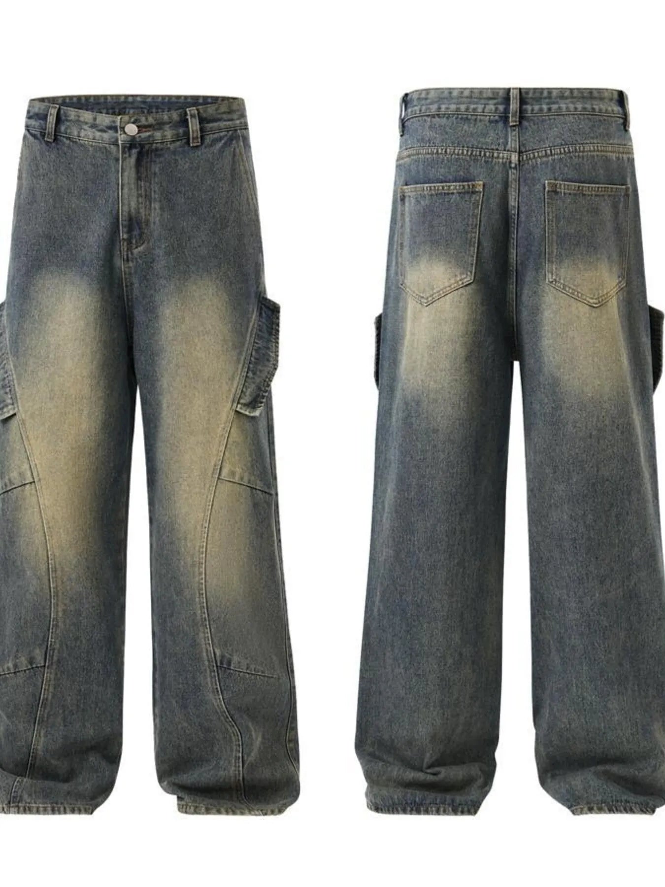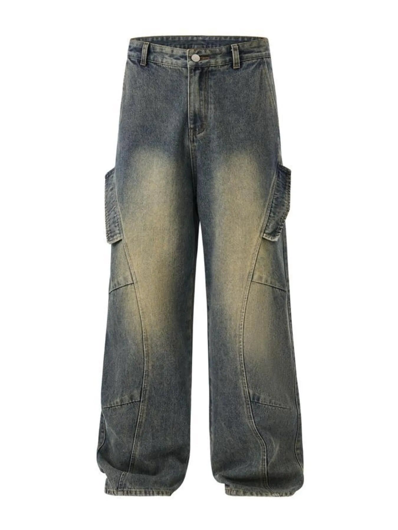 Men's Full Size Washed Cargo Wide Leg Jeans Plus Size