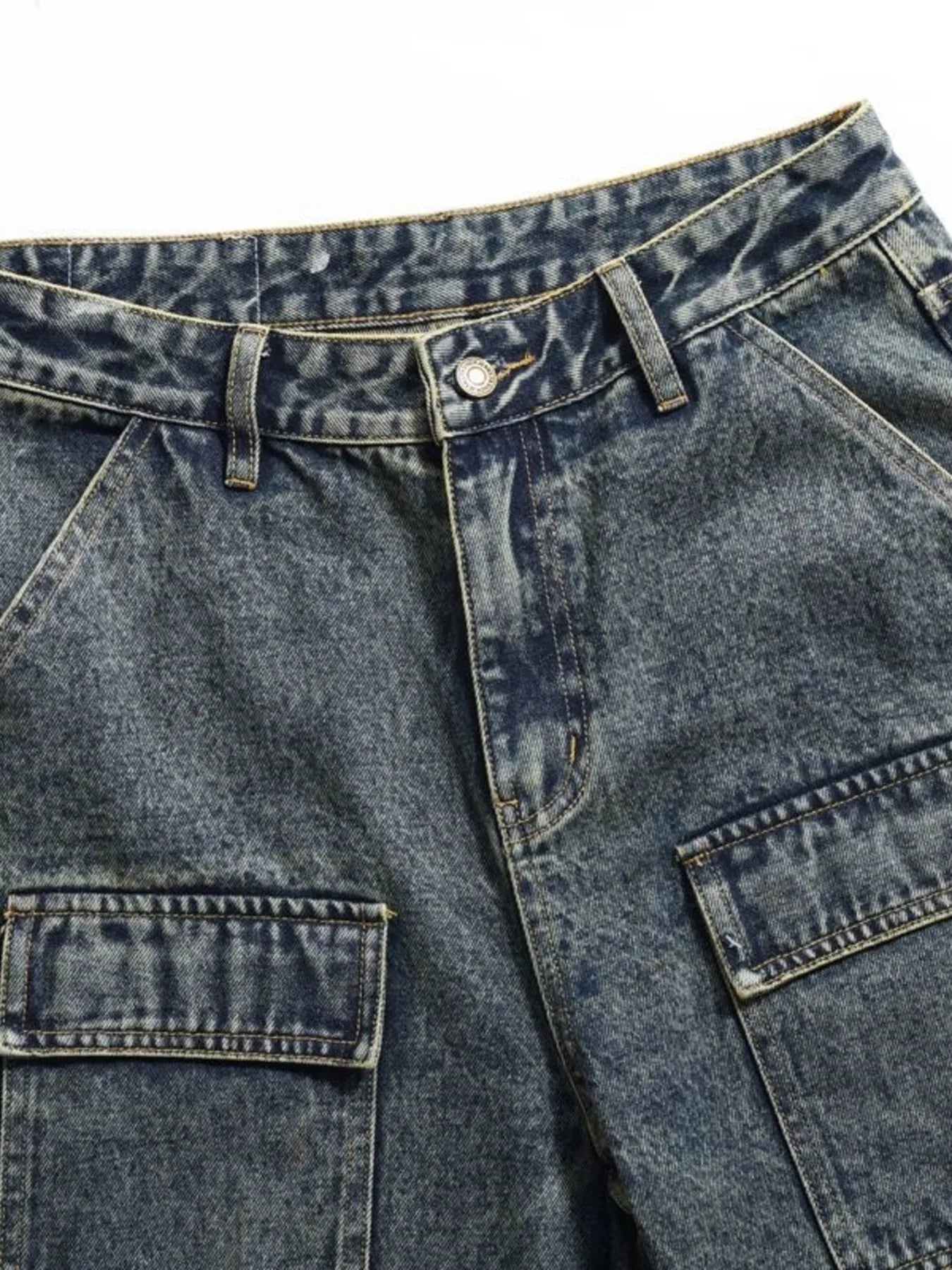 Men's Vintage Distressed Multi-Pocket Cargo Jeans