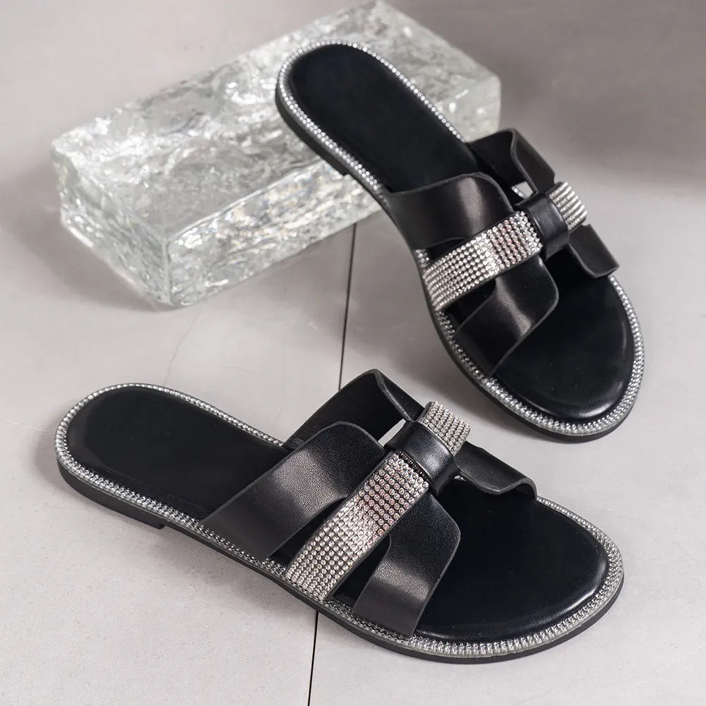 Rhinestone Open Toe Flat Sandals