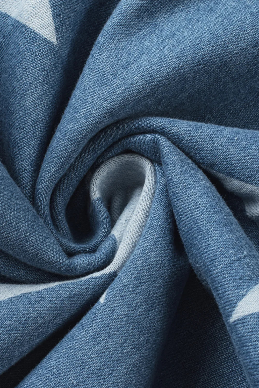 Star Print Buttoned Strap Wide Leg Denim Overalls