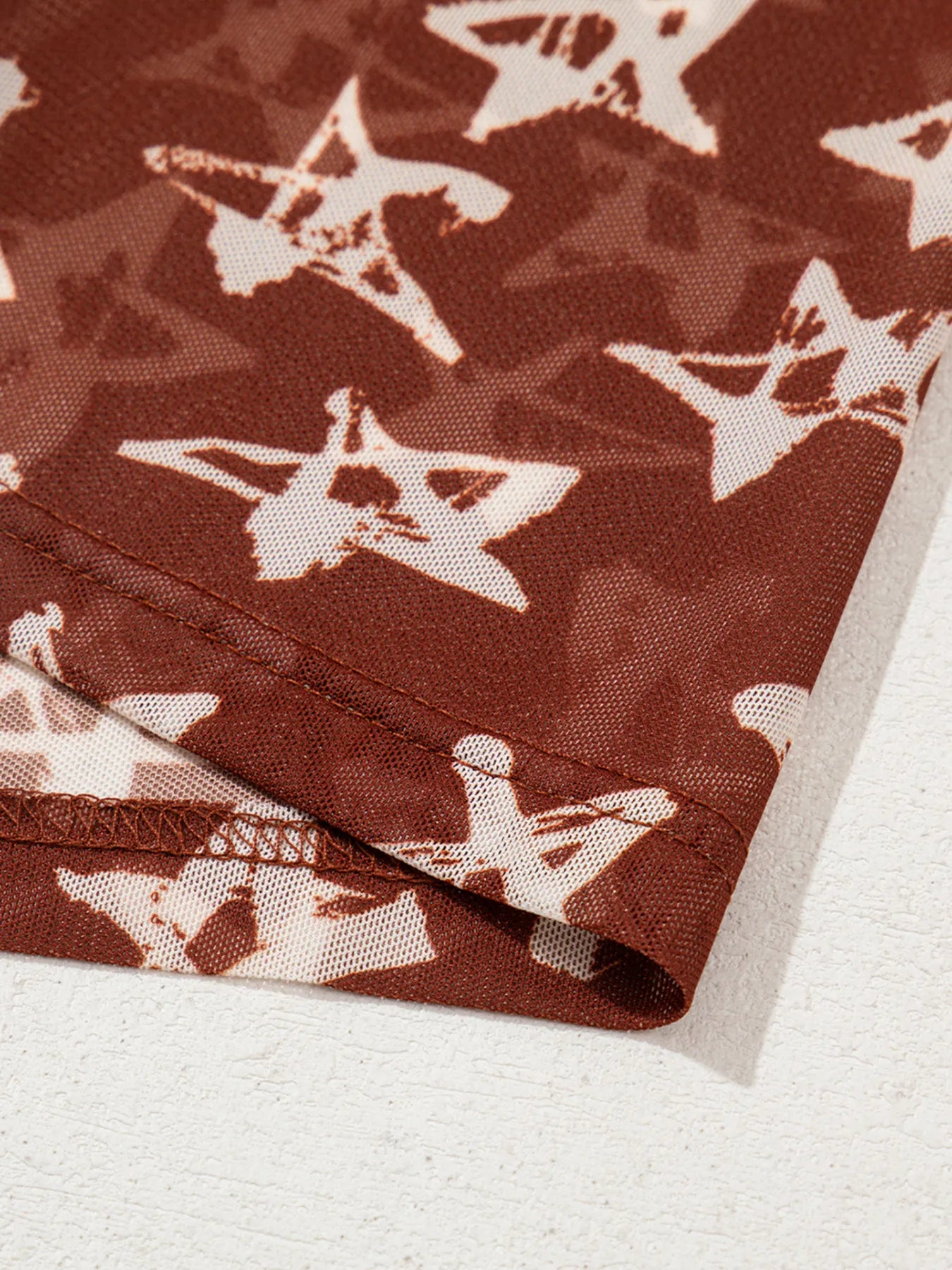 Star Print Long Sleeve Mock Neck Top
