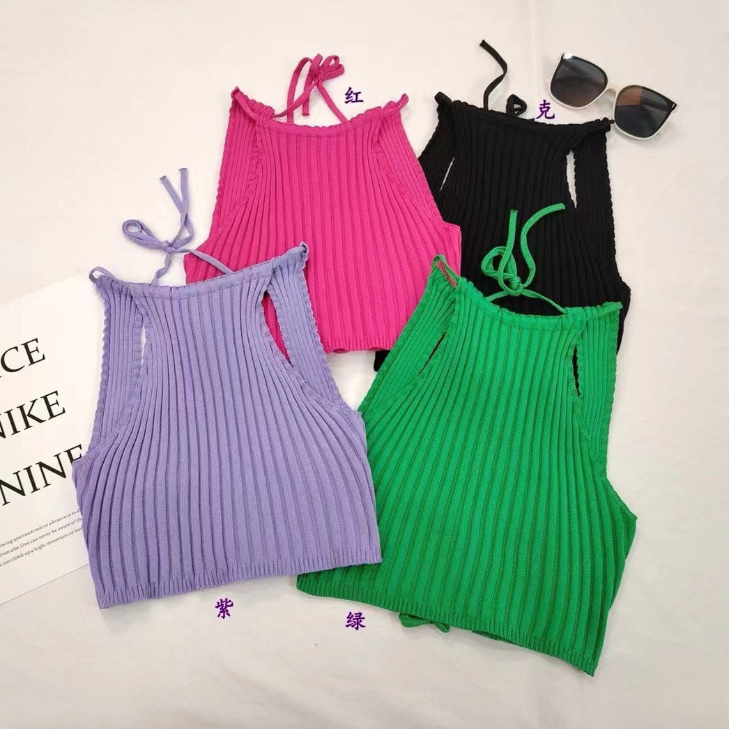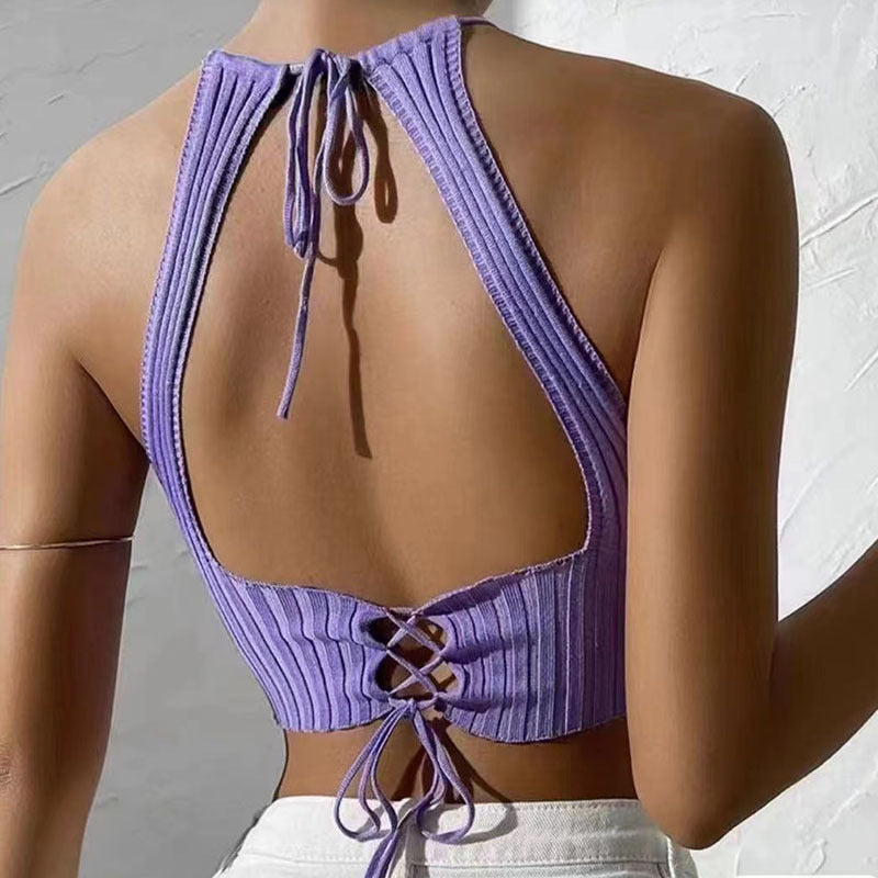Summer New Women's Clothing Backless Slim Fit Thin Cross Straps Solid Color Camisole