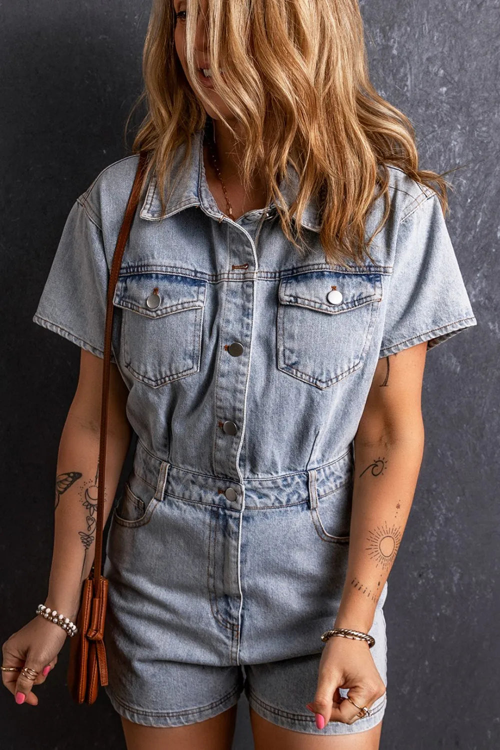 Washed Button Down Pocketed Denim Romper