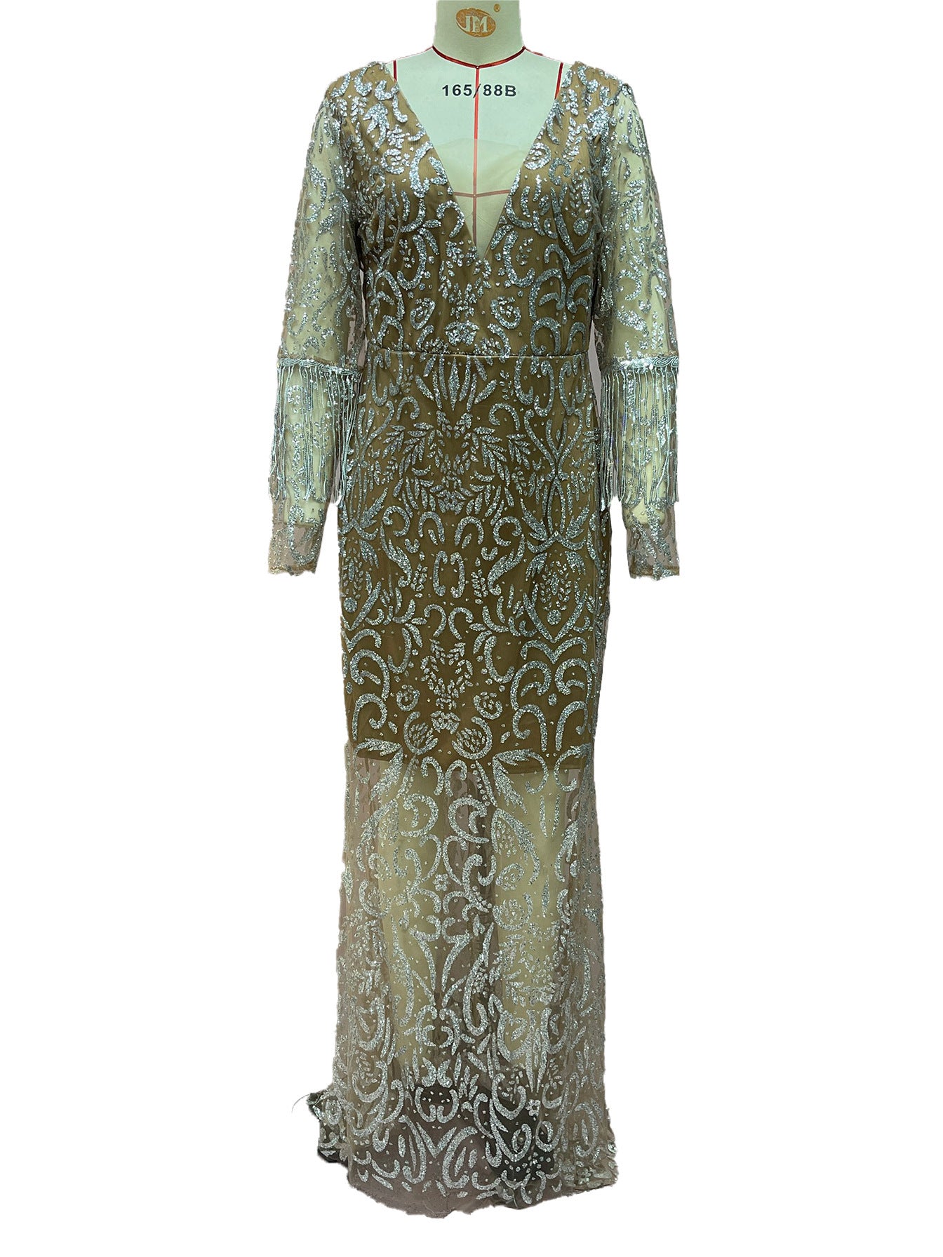 Women's Fishtail Gold Evening Tassel Elegant Dress